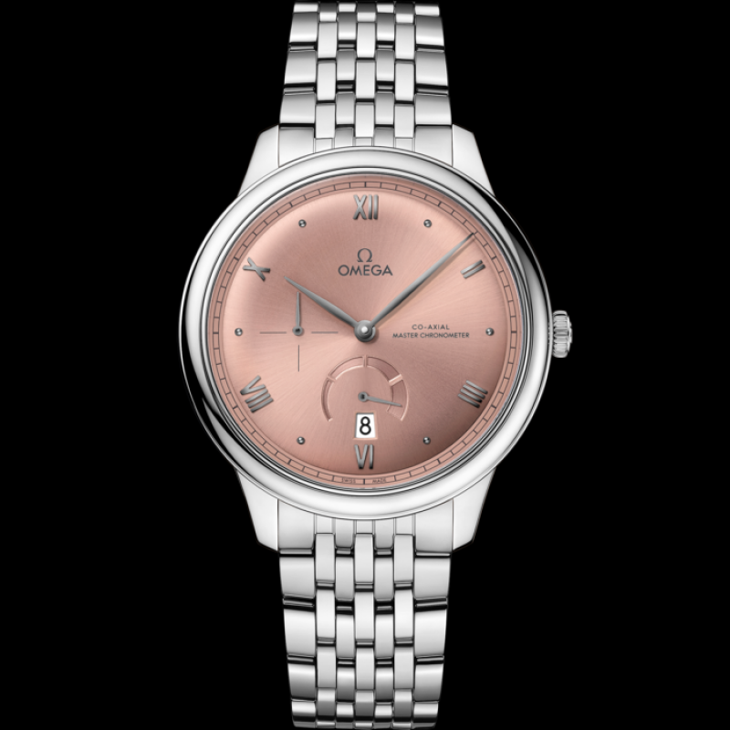 機芯類型 機芯:歐米茄機芯8810 同軸擒縱系統自動上鏈機芯,獲得瑞士聯邦計量科學研究 所(METAS)Master Chronometer認證,可抵禦高達 15,000高斯的磁場。日曆及動力儲存顯示置於6時位置, 小秒針顯示設於9時位置。無卡度游絲擺輪採用矽游絲, 雙向自動上鏈。阿拉伯風格日內瓦波浪紋鍍銠飾面。 動力儲存: 55小時 水晶鏡面 防磨損藍寶石水晶鏡面,內部經防反光處理 防水性能 3 巴 (30 米 / 100 呎) 腕表表殼及表面 表殼:不銹鋼 表殼直徑:41毫米 表耳之間闊度: 19毫米 上下表耳之間距離: 47.89毫米 厚度: 10.8毫米 表面顏色:粉紅色 產品總重量(約數): 122 g 表鏈帶 材質: 不銹鋼表鏈帶 帶扣類型: 蝴蝶扣 特色 防磁, 獲瑞士官方天文台認證, 日期顯示, master chronometer認證, 動力儲存顯示, 小秒針, 透明表 背