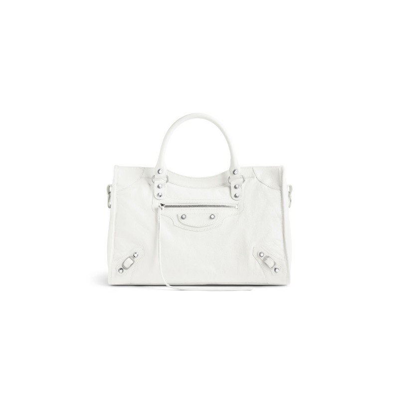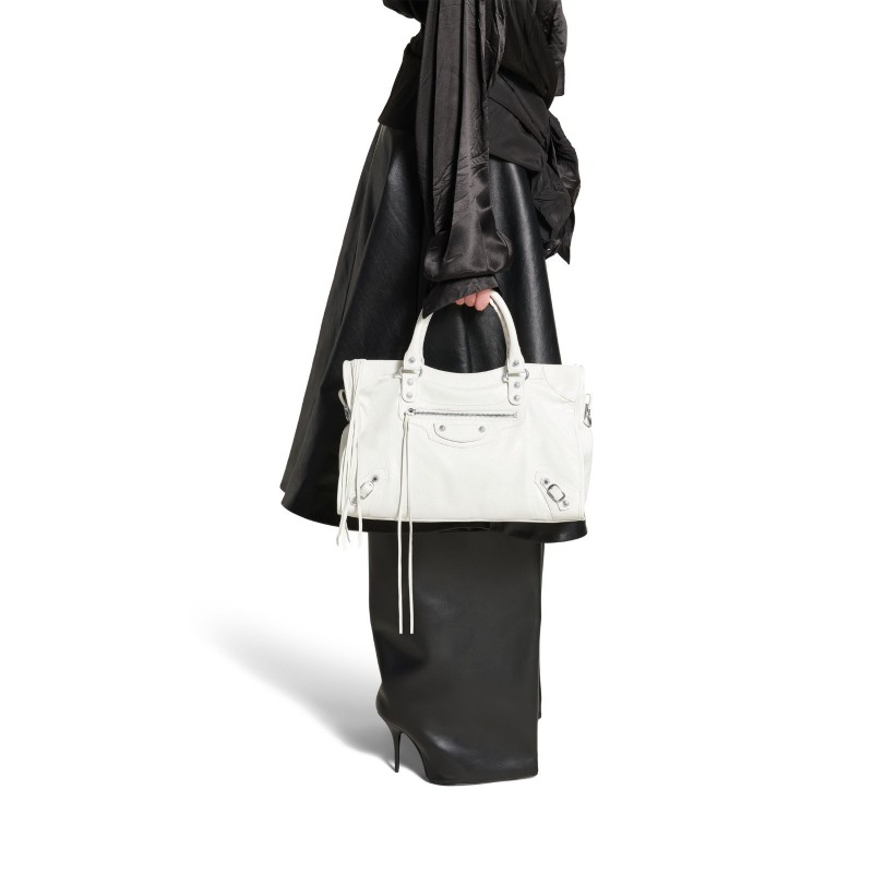 巴黎世家 中號手袋在黑 Le City黑色細紋羊皮革中型手袋,飾以閃亮銀色金屬配件