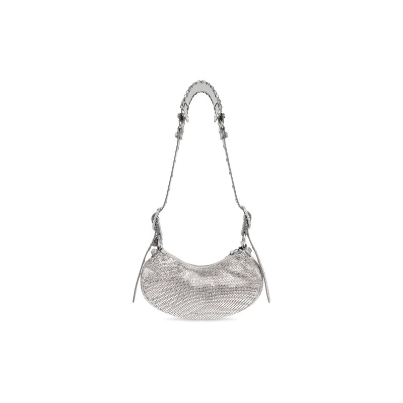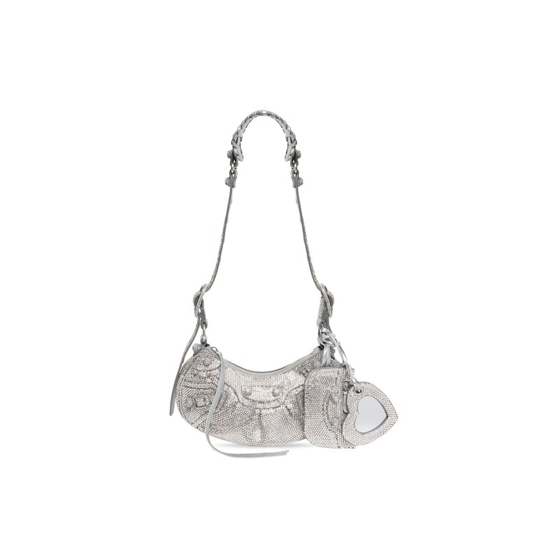 巴黎世家 女 LE CAGOLE XS 灰色水鑽單肩包