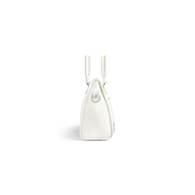 Le City白色细纹羊皮革中号手袋,饰以闪亮银色金属配件