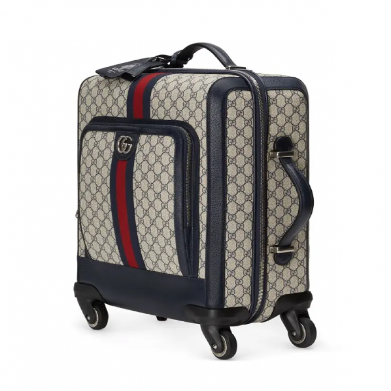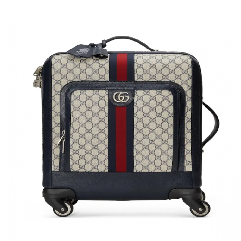 在《古驰爱的进行曲》全新时装系列中,品牌推出了蓝色和米色的GG Supreme帆布,经典隽永。帆布材质被长久地运用于多个系列当中,已成为品牌的标志性材质。这款 Gucci Savoy系列拉杆箱采用经典配色。